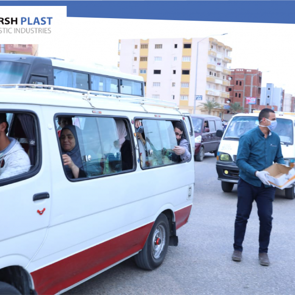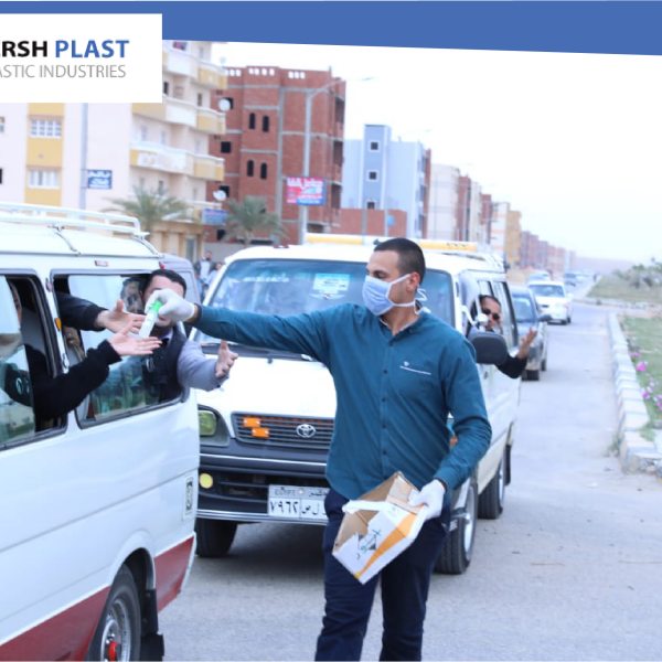 إستجابة لدعوة السيد الرئيس عبد الفتاح السيسي ومبادرةوزارة الصحة للقضاء على فيروس كورونا, قامت شركة القرش بلاست لصناعة البلاستيك بتوزيع زجاجات الكحول والكمامات على الماره والعاملين كإجراء وقائي واحترازي للوقاية من فيروس كورونا المستجد ( كوفيد – ١٩) حفاظا على سلامة العاملين والماره ولتوعيتهم بكيفية تجنب الفيروس.